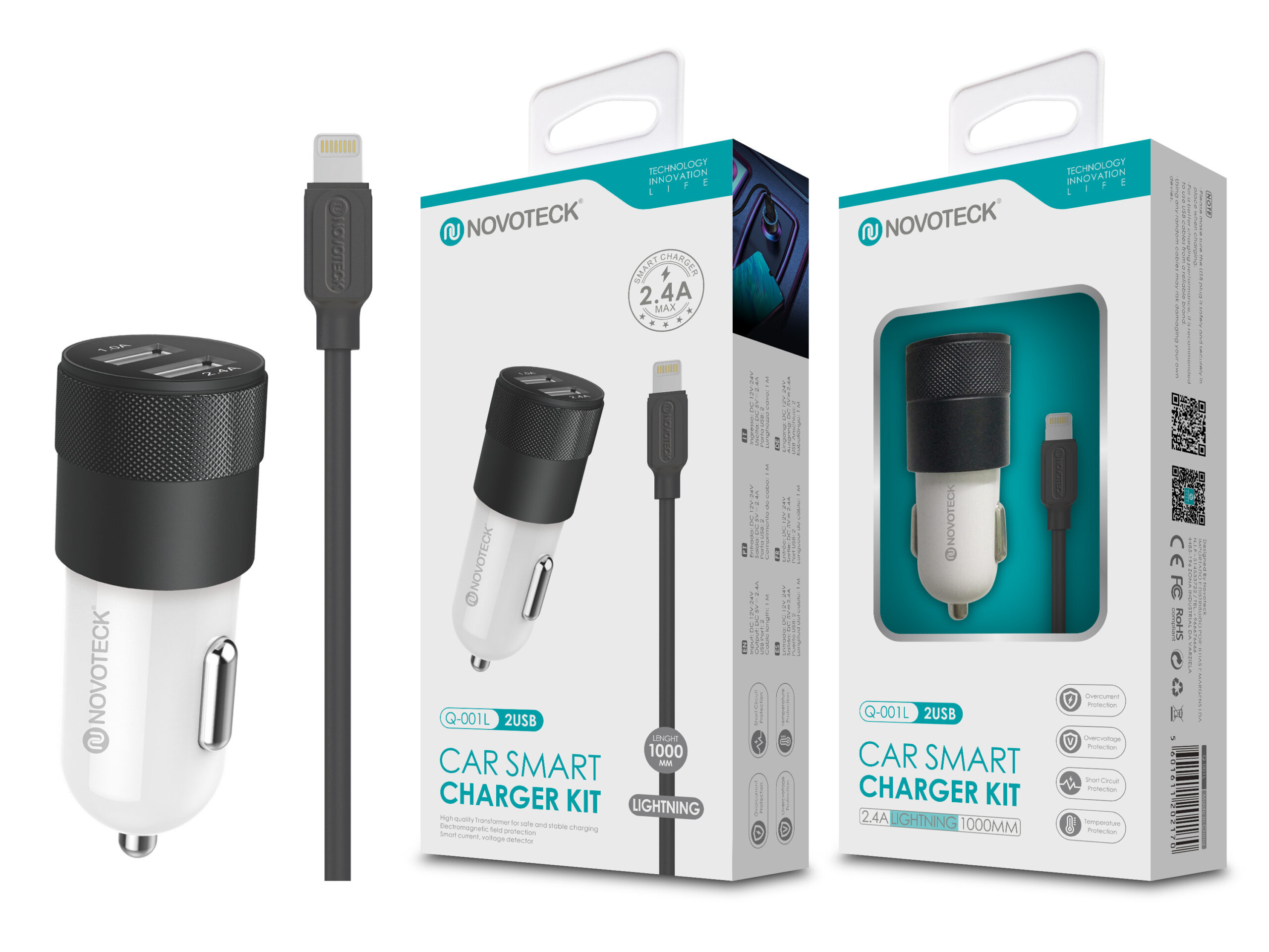 O Kit Carregador Automóvel Inteligente Novoteck Q-001L é a solução ideal para manter seus dispositivos Apple carregados enquanto você está na estrada, combinando estilo, funcionalidade e segurança em um acessório indispensável para o seu carro.